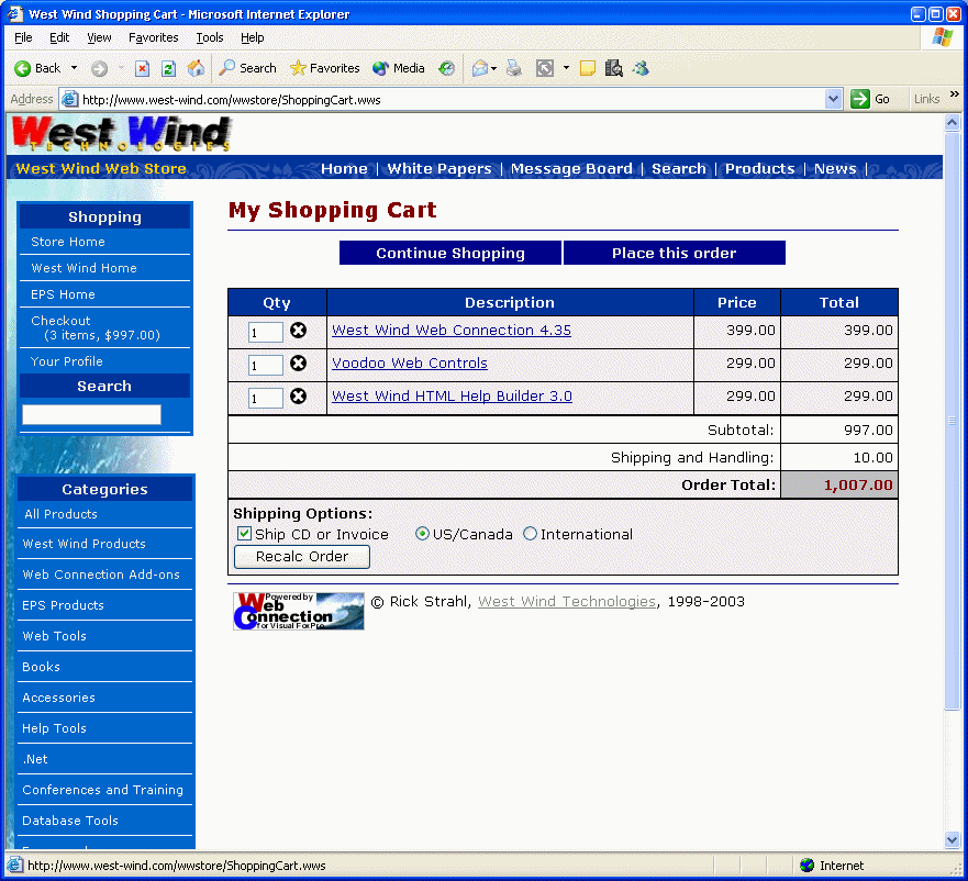 Also, if you look at the FrontPage layout you see that the Place This Order Button is also dynamic - it's not displayed here. The reason for this is simple: You don't want to display it unless the shopping cart is not empty. A PRIVATE flag plNoItems is used to determine whether this order can be placed.