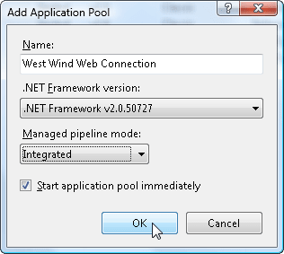 Setting up IIS 7 for using with the managed module is easy by using the Integrated pipeline. With IIS 7 this model permits true XCOPY deployment with no additional configuration needs - you can simply copy the WebConnectionModule.dll in your BIN directory as part of your Web directory and make a couple of changes in web.config to enable to the module.