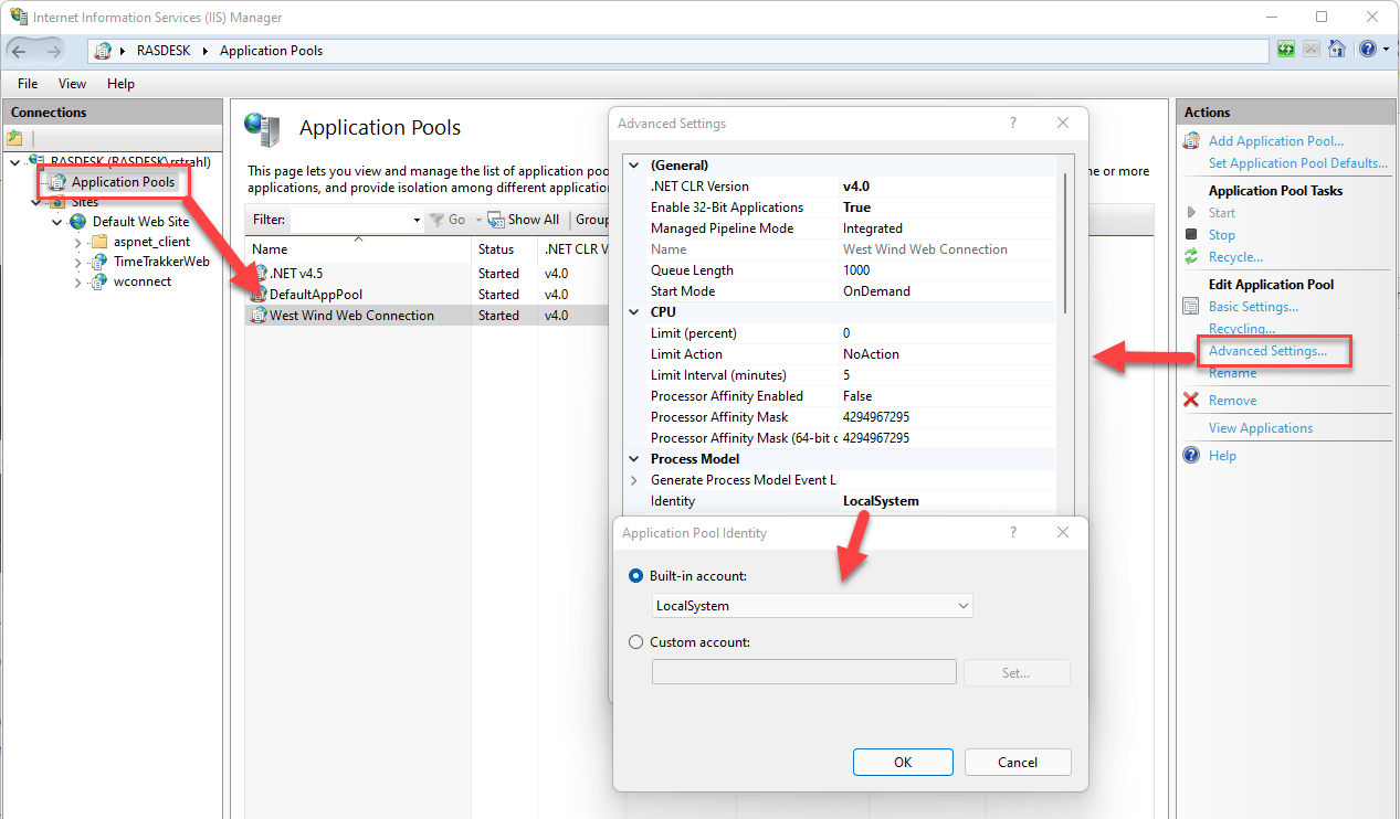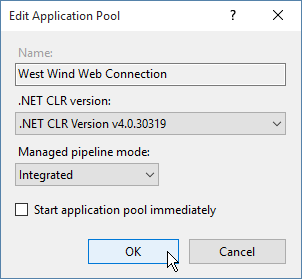 - Select the West Wind Web Connection Application Pool if it exists