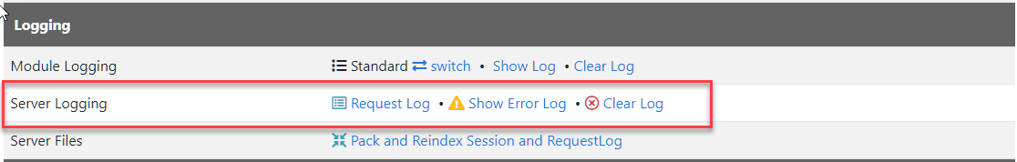 These links let you view the Request and Error Logs as well as clear out the log to today's date.