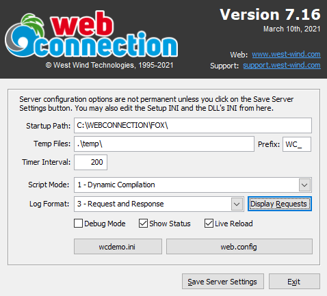This enables Live Reload for the Web Connection server, which automatically restarts the Web Connection server when you change a PRG or INI file. When used in combination with the Web Server Live Reload which also reloads the active Web Browser page, you can very quickly and interactively make changes to HTML and code logic and see the changes immediately reflected in the Web browser without having to manually reload pages.