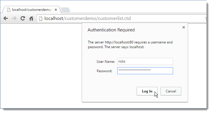Now re-run the EditCustomer page again and you should see the stock HTML based login page: