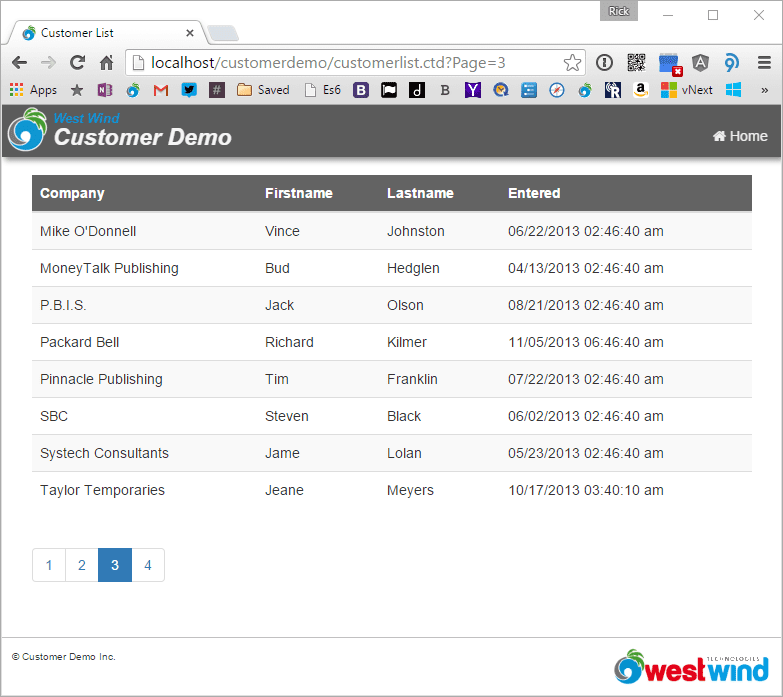 As in the first Step By Step Guide I'm relying on the wwProcess::PageHeaderTemplate() and wwProcess::wwPageFooterTemplate() methods to provide the basic page 'wrapper' layout for the header and footer. I customized the ~\views\_PageHeaderTemplate.html and ~\views\_PageFooterTemplate.html slightly by changing the header and copyright company.