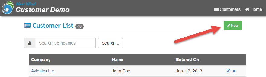Adding a new customer is actually quite easy. In fact the existing code we have already provides for this functionality for the most part and we only need very minor changes.